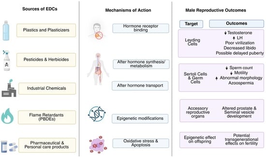 Male reproductive health is increasingly threatened by endocrine-disrupting chemicals (EDCs), which interfere with hormonal homeostasis and reproductive physiology. Rising rates of male infertility have been linked to greater exposure to pollutants such as heavy metals, phthalates, pesticides, and bisphenol A. These compounds act