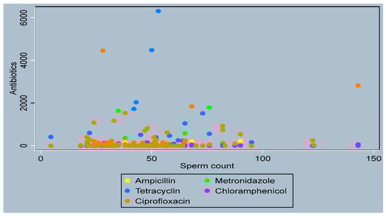 Irregular use of antibiotics is widespread in Nigeria, which has been reported to be associated with the prevalence of antibiotic resistance. As antibiotics have been reported to be associated with declining male infertility in animal models, we investigated the association between exposure to