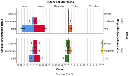 Background/Objectives: Oral health-related quality of life (OHRQoL) is a complex topic, encompassing the medical, functional and psychosocial aspects of well-being, especially in the context of systemic conditions that can trigger oral cavity impairment. While this subject has been extensively investigated in adults, evidence remains limited in pediatric populations, particularly in children with leukemia who are at high risk for oral complications related to the disease itself and its treatment. Moreover, children and parent perceptions of oral health are essential for guiding preventive and personalized therapeutic strategies, yet they are poorly explored in this clinical context. The objective of this study was to assess OHRQoL in children with leukemia and gingival inflammation, and compare it with that of children without this systemic condition. Methods: This observational, cross-sectional, case–control study was conducted on 99 subjects, divided into two groups: the study group n = 49 leukemia subjects and the control group n = 50 subjects without oncologic pathology. Clinical examination of all subjects was performed and oral health status was evaluated using Oral Health Index-Simplified (OHI-S) and Gingival Index (GI). Parents filled out a personalized exploratory questionnaire, adapted after established scales, designed to capture the child’s perceived impact of certain leukemia-related gingivo-periodontal alterations, including pain, ulcerations, gingival bleeding and xerostomia. Data were analyzed using descriptive statistics, Pearson’s Chi-square test and comparative graphical analyses (IBM SPSS Statistics 26). Results: Children with leukemia reported higher frequencies of xerostomia, ulcerations and gingival bleeding compared to children in the control group, with xerostomia showing a suggestive association to gingival inflammation. Oral hygiene status of children in the leukemia group was generally better among children receiving parental assistance during brushing or those practicing dental flossing. Comparative graphical analyses showed differences in symptom reporting and oral hygiene support between groups. Conclusions: The results suggest that xerostomia seemed to align with gingival inflammation in children with leukemia, while parental assistance and dental flossing seemed to be associated with better oral hygiene status. Our findings also support the need for developing standardized, disease-oriented scales of evaluating OHRQoL, as well as individualized oral care and continuous monitoring in order to improve oral health-related quality of life in this vulnerable pediatric population.