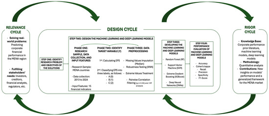 This study classifies corporate financial performance in countries in the Middle East and North Africa (MENA) region, addressing the critical need for accurate and early identification of high-, moderate-, and low-performance companies. The selection of the MENA region was driven by its significant economic growth, diverse market structures, and increasing attractiveness for foreign investment, which makes accurate financial performance assessment important. Despite the growing interest in AI applications for corporate financial performance, a research gap still persists. Existing studies focus primarily on bankruptcy and financial distress prediction in developed countries, with rather limited studies on multi-class financial performance classification in the MENA region. This study addresses a significant gap in the corporate financial performance evaluation literature, which is the lack of a robust, comparative evaluation of advanced DL techniques against conventional ML methods for multi-class corporate financial performance prediction using high-dimensional data. This study employs a design science research (DSR) approach by developing an evaluation analytics artifact that integrates structured preprocessing, dimensionality reduction, and comparative ML and DL modeling, following the relevance, design, and rigor cycles. By employing a design science research (DSR) methodology, the research used a dataset from the Compustat database, comprising 7971 firm-year observations from 2013 to 2024. A rigorous dimensionality reduction process, including pairwise correlation filtering, resulted in a final set of 15 key classification features. The study compared three machine learning techniques—random forests (RFs), support vector machines (SVMs), and eXtreme Gradient Boosting (XGBoost), against one deep learning technique, deep neural networks (DNNs), for classifying the corporate financial performance of MENA-region companies. The models were trained to classify corporations into three performance classes (low, moderate, and high), using the earnings per share (EPS) as the target variable. The empirical findings indicate that all four machine learning algorithms achieved meaningful predictive performance in classifying EPS-based corporate performance. Among the benchmark models, the support vector machine (SVM) and random forest (RF) classifiers produced stable and competitive results, indicating strong generalization capabilities across firms and periods. XGBoost consistently outperformed the traditional machine learning models, delivering the highest overall classification accuracy and superior discriminatory power, highlighting its effectiveness in capturing nonlinear relationships and complex feature interactions. Similarly, the deep neural network further improved classification performance relative to the benchmark models and exhibited comparable results to XGBoost, especially in modeling high-dimensional data. This superior performance can substantially enhance earnings performance classification through early performance deterioration and improvement identification, allowing more proactive strategic and operational decisions.