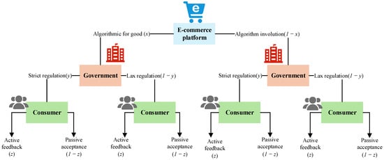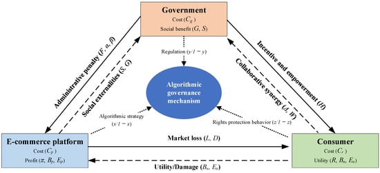 The unbridled pursuit of statistical rationality has precipitated a crisis of value rationality in e-commerce ecosystems, leading to algorithmic involution—a dilemma characterized by destructive hyper-competition. To reconcile this theoretical paradox and explore effective governance pathways, this paper constructs a tripartite evolutionary game model involving e-commerce platforms, government regulators, and consumers. Simulation results indicate that high-intensity government deterrence constitutes the necessary stability foundation of hard constraints, while consumer activism acts as the decisive accelerator of the soft environment contingent on high synergistic gains and low information screening costs. Furthermore, a platform’s pivot toward “algorithm for good” is not driven by altruism, but by the rational calibration between short-term extractive gains and long-term benevolent returns. Sensitivity analysis confirms that reducing the ratio of these two factors is the effective lever to speed up system convergence. Finally, effective governance requires restructuring this payoff matrix by establishing dynamic penalty mechanisms and transparent low-cost feedback channels to render ethical algorithmic behavior a dominant strategy in terms of economic rationality. This research aims to guide the e-commerce ecosystem from a zero-sum game of involution toward a sustainable equilibrium of multi-party value co-creation.