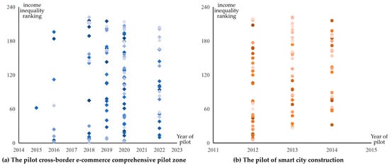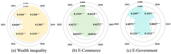 Market and government are the main bodies in solving the problem of income inequality, especially as both undergo electronic informatization. This study explores the effect of e-commerce and e-government on regional income inequality, along with its impact mechanisms and spatial characteristics. The results show a significant “sword effect” impact: e-commerce exacerbates income inequality, while e-government suppresses it. This conclusion remains valid after endogeneity and robustness tests. Mechanistically, e-commerce widens the gap by promoting industrial agglomeration and worsening resource misallocation, while e-government narrows it by enhancing fiscal transparency and alleviating resource misallocation. Spatially, all three variables exhibit spatial correlation and β-convergence; e-commerce and income inequality show α-divergence, while e-government shows α-convergence. E-commerce presents a negative spatial spillover of “aggravating local inequality but suppressing adjacent regional inequality,” while e-government’s inhibitory effect is limited to local cities. Their impacts show significant heterogeneity across regional gradients and geographical locations, providing a basis for differentiated policy implications.