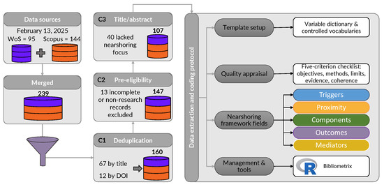 Background: Nearshoring has risen after shocks and policy shifts. We synthesize evidence in a compact loop linking triggers (trade frictions, supply-chain risk, new agreements) to location choices mediated by multidimensional proximity (geographic, institutional, organizational, social, cognitive, functional) to components (manufacturing footprint, Foreign Direct Investment (FDI), employment) and outcomes (spillovers, productivity, innovation) conditioned by absorptive capacity and institutions. Methods: We conducted a literature review using major bibliographic databases. A staged screening pipeline (deduplication, pre-eligibility, and title–abstract screening) preceded full-text coding aligned with the review framework (triggers, proximity, components, outcomes, mediators). Studies were appraised with a five-criterion checklist, and themes were consolidated with basic bibliometric checks. Results: Evidence is North Atlantic and manufacturing-centric. Supply-chain disruptions dominate triggers; non-geographic proximity strongly moderates relocation. FDI anchors ecosystems, while employment effects are lagged and compositional. Strong capability and policy mixes yield broader spillovers; otherwise, benefits remain enclave-like. Sustainability and transformative outcomes are rarely assessed. Conclusions: The loop clarifies feedback from outcomes to future siting. Firms should build proximity beyond geography and pair early FDI with supplier and skills upgrading; policymakers should align instruments to governance, capability formation, and logistics. Research should expand Global South coverage and integrate environmental and inclusion metrics.