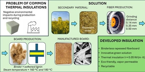Thermal insulation materials play an important role in the construction industry in terms of reducing energy consumption in new and existing buildings, which is of key importance for environmental protection and sustainable development. Currently, the most commonly used insulation materials in Central Europe are expanded polystyrene, mineral wool and polyurethane materials. However, these materials significantly burden the environment both during the production of the material itself (in terms of primary energy content—PEI; CO2 emissions—GWP) and after its service life in the structure. It should be noted that some of the input raw materials used in the production of insulation are non-renewable, e.g., oil. A more environmentally friendly option is therefore insulation materials from easily renewable and recyclable raw material sources. Experts are striving to return to the original, easily renewable sources of raw materials or to use secondary industrial sources in the development of non-traditional but effective insulation materials.