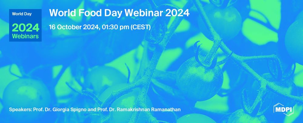 In celebration of World Food Day 2024, MDPI is launching a special webinar to encourage researchers to unite, take action, and showcase how collective knowledge can address the pressing challenges of food security, sustainable agriculture, and resource management.