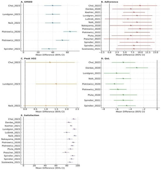 Background and Objectives: Heart failure (HF) affects millions globally, with traditional cardiac rehabilitation (CR) improving outcomes but facing access barriers. Telehealth-based CR offers a promising alternative, yet its effectiveness and patient-centred outcomes require updated evaluation. This systematic review aimed to assess the effectiveness, accessibility, and patient-centred outcomes of telehealth-based CR compared with usual care or centre-based CR in adults with HF. Materials and Methods: This systematic review followed PRISMA 2020 guidelines. Eligible studies were randomized controlled trials involving adults with HF receiving telehealth CR (e.g., telephone, apps, remote monitoring) compared with usual care or centre-based CR; non-RCTs and studies lacking relevant outcomes were excluded. Searches of PubMed, Medline, CINAHL, EMBASE, and Web of Science identified studies published between 2020–2025. Primary outcomes were exercise capacity (six-minute walk distance [6MWD], peak VO2) and quality of life (QoL); secondary outcomes included adherence, satisfaction, and clinical events. Meta-analyses used standardized mean differences (SMD) for 6MWD and QoL. Risk of bias was assessed using PEDro, Jadad, and RoB2 tools. Results: Fourteen randomized controlled trials (total n = 7371 participants) met the inclusion criteria. Telehealth CR significantly improved 6MWD (SMD 0.35, 95% CI 0.15–0.55, p < 0.001; 6 studies) and QoL (SMD 0.28, 95% CI 0.10–0.46, p = 0.002; 8 studies) compared to usual care, showing equivalence to center-based CR. Adherence ranged from 70–92% and satisfaction 75–96%, and hospitalizations declined in some studies, though mortality benefits were not observed. Conclusions: Telehealth CR is effective, accessible, and patient-centred for individuals with HF, performing comparably to centre-based CR and better than usual care. It should be integrated into standard HF management, supported by policy and technology investment. Evidence is limited by short follow-up durations and moderate heterogeneity among trials.