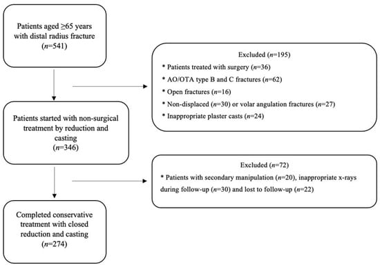 Background and Objectives: Distal radius fractures (DRFs) are among the most common upper-extremity injuries in the elderly, with malunion leading to long-term pain and disability. This study aimed to compare the discriminative performance of the Cast Index (CI), Gap Index (GI), and Three-Point Index (TPI) for predicting malunion during follow-up after closed reduction and casting in elderly patients with dorsally displaced DRFs. Materials and Methods: This study retrospectively analyzed 274 patients aged ≥65 years (mean 73.6 ± 6.5 years) with dorsally displaced Arbeitsgemeinschaft für Osteosynthesefragen/Orthopaedic Trauma Association (AO/OTA) 2R3A fractures treated conservatively between 2018 and 2023. Standard posteroanterior and lateral radiographs were evaluated immediately post-reduction, at 7–10 days, and at 4 weeks. Cast, Gap, and Three-Point Indices were measured independently by two observers, and the mean values were analyzed. Receiver operating characteristic (ROC) analysis was used to evaluate discriminative performance for the detection of malunion. Subgroup analyses were performed based on fracture stability according to La Fontaine criteria. Results: At the final follow-up, 136 fractures (49.6%) maintained acceptable alignment, while 138 fractures (50.4%) experienced malunion. There was no significant difference in radiographic parameters between groups immediately post-reduction or at 7–10 days. The Gap and Three-Point Indices were significantly higher in the malunion group at 7–10 days and at 4 weeks (p < 0.001), but the Cast Index showed no significant between-group difference. At 7–10 days, the Gap Index [Area Under the Curve (AUC) = 0.641; cut-off = 0.33] and the Three-Point Index (AUC = 0.640; cut-off = 1.51) demonstrated modest discriminative ability. In stable fractures, both indices were statistically significantly higher in the malunion group, whereas in unstable fractures, only the Three-Point Index was statistically significantly higher in the malunion group (p < 0.001). Conclusions: The Gap and Three-Point Indices showed greater discriminative ability than the Cast Index for malunion after conservative management of DRFs in elderly patients. Thresholds of GI ≥ 0.33 and TPI ≥ 1.51 at 7–10 days may serve as practical quantitative indicators to identify patients who may warrant closer follow-up and possible cast reassessment in conjunction with standard radiographic assessment and clinical judgment.