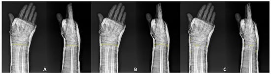Background and Objectives: Distal radius fractures (DRFs) are among the most common upper-extremity injuries in the elderly, with malunion leading to long-term pain and disability. This study aimed to compare the discriminative performance of the Cast Index (CI), Gap Index (GI), and Three-Point Index (TPI) for predicting malunion during follow-up after closed reduction and casting in elderly patients with dorsally displaced DRFs. Materials and Methods: This study retrospectively analyzed 274 patients aged ≥65 years (mean 73.6 ± 6.5 years) with dorsally displaced Arbeitsgemeinschaft für Osteosynthesefragen/Orthopaedic Trauma Association (AO/OTA) 2R3A fractures treated conservatively between 2018 and 2023. Standard posteroanterior and lateral radiographs were evaluated immediately post-reduction, at 7–10 days, and at 4 weeks. Cast, Gap, and Three-Point Indices were measured independently by two observers, and the mean values were analyzed. Receiver operating characteristic (ROC) analysis was used to evaluate discriminative performance for the detection of malunion. Subgroup analyses were performed based on fracture stability according to La Fontaine criteria. Results: At the final follow-up, 136 fractures (49.6%) maintained acceptable alignment, while 138 fractures (50.4%) experienced malunion. There was no significant difference in radiographic parameters between groups immediately post-reduction or at 7–10 days. The Gap and Three-Point Indices were significantly higher in the malunion group at 7–10 days and at 4 weeks (p < 0.001), but the Cast Index showed no significant between-group difference. At 7–10 days, the Gap Index [Area Under the Curve (AUC) = 0.641; cut-off = 0.33] and the Three-Point Index (AUC = 0.640; cut-off = 1.51) demonstrated modest discriminative ability. In stable fractures, both indices were statistically significantly higher in the malunion group, whereas in unstable fractures, only the Three-Point Index was statistically significantly higher in the malunion group (p < 0.001). Conclusions: The Gap and Three-Point Indices showed greater discriminative ability than the Cast Index for malunion after conservative management of DRFs in elderly patients. Thresholds of GI ≥ 0.33 and TPI ≥ 1.51 at 7–10 days may serve as practical quantitative indicators to identify patients who may warrant closer follow-up and possible cast reassessment in conjunction with standard radiographic assessment and clinical judgment.