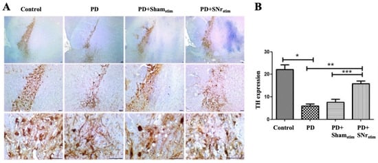 Background and Objectives: Parkinson’s disease (PD) is a neurodegenerative disorder marked by bradykinesia, rigidity, and tremor. While deep brain stimulation (DBS) of the subthalamic nucleus (STN) and globus pallidus internus (GPi) effectively alleviates motor symptoms, the potential of targeting the substantia nigra pars