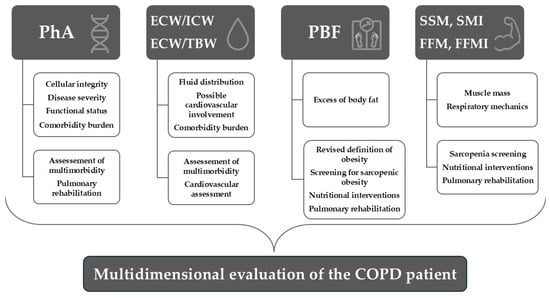 Background and Objectives: Chronic obstructive pulmonary disease (COPD) is a major cause of morbidity and mortality worldwide and is frequently associated with multiple comorbidities. Bioelectrical impedance analysis (BIA) provides additional information on body composition and may contribute to the multidimensional assessment of