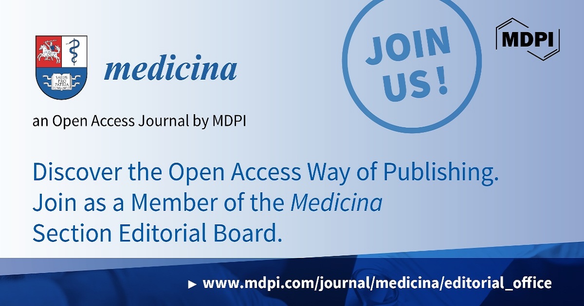 Medicina (ISSN 1648-9144; https://www.mdpi.com/journal/medicina) is a well-established, fully open access journal which provides an advanced forum for studies related to medicine. The journal impact factor is 2.430, and it is also indexed in many important databases (Scopus, SCIE (Web of Science), PubMed, MEDLINE, PMC, Embase, and many others). It is currently ranked in the second quartile (Q2) in its JCR category. More details on the Editorial Board of Medicina are available at: https://www.mdpi.com/journal/medicina/editors.