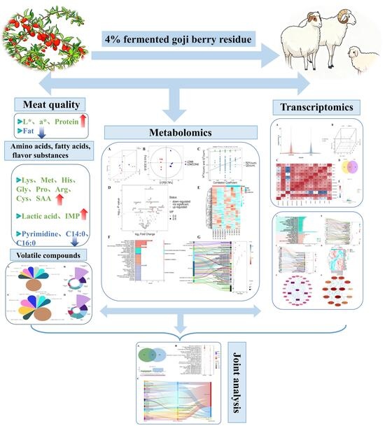 Metabolomics and Transcriptomics Reveal the Effects of Fermented Lycium barbarum (Goji) Berry Residue on Muscle Nutrition and Flavor Quality in Fattening Tan Sheep