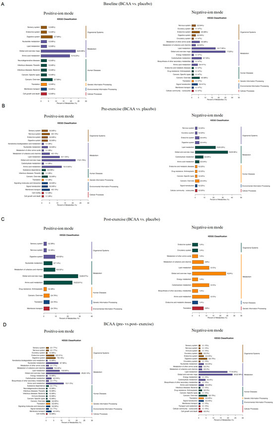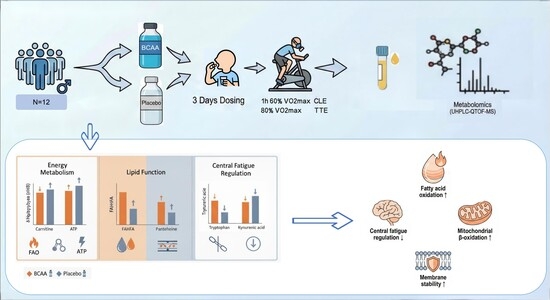 Background: Branched-chain amino acids (BCAAs) are popular as sports supplements due to their ability to enhance performance and recovery. However, the full spectrum of metabolic alterations triggered by acute supplementation with BCAAs in conjunction with exercise remains incompletely understood. Methods: A randomized crossover