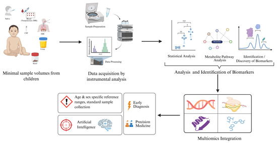 Mass spectrometry-based metabolomics is a valuable tool for advancing pediatric health research. Along with nuclear magnetic resonance, it enables detailed biochemical analysis from minimal sample volumes, a critical feature for pediatric diagnosis. Metabolomics supports early detection of inherited metabolic disorders, monitors metabolic changes