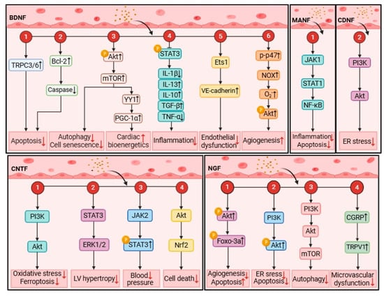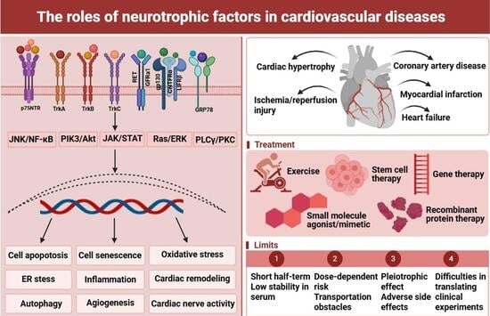 Cardiovascular diseases (CVDs) have emerged as a common health problem. However, despite their prevalence, little progress has been made in their treatment. In recent years, neurotrophic factors (NTFs) have been discovered to exert cardioprotective functions for CVDs. NTFs can modulate vascular integrity, myocardial