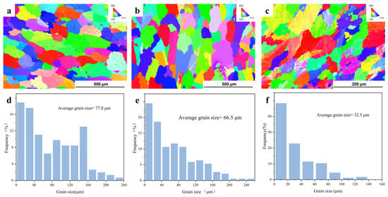 . At the same time, a power dissipation diagram and thermal processing diagram were created. The peak value η can reach 0.36, and the optimum hot working parameter window of the GH3230 superalloy is 1020~1110 °C/0.1~0.001 s−1. The microstructure evolution of the alloy under different conditions was studied by EBSD. With an increase in deformation temperature and a decrease in strain rate, the grain size significantly improved; the average grain size of the GH3230 alloy increased from 16.86 to 35.06 μm, and the degree of recrystallization of the alloy also improved. The maximum recrystallization volume fraction is 75.2%. At low temperature and high strain rate, the recrystallization mechanism of the microstructure is mainly CDRX, and DDRX is the auxiliary mechanism. At high temperature and low strain rate, the main corresponding recrystallization mechanism gradually transforms into DDRX.
