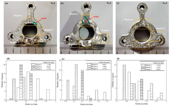 Cracks were found at the gate of the 430Cb ferritic stainless steel exhaust system jet base produced by investment casting. In this paper, the cracks of failed stainless steel castings were comprehensively analyzed by means of macroscopic inspection, laser confocal microscopy, field emission scanning electron microscopy, electron backscatter diffraction, X-ray diffractometer, ProCAST (version 2018, ESI Group, Paris, France) simulation and Thermo-Calc (TCFE10 database, 2022a, Thermo-Calc Software AB, Solna, Sweden) thermodynamic calculation. It can be concluded that all the cracks originate from the gate on the surface of the casting, and the fracture surface shows brittle intergranular characteristics, which can be determined as cold cracks. The formation of cold cracks can be attributed to the fact that the local stress generated during cooling after the casting solidifies exceeds the strength limit of the material itself. As the gate is the final solidification zone, shrinkage is limited and stress is concentrated. The grains are coarse, and the microstructure defects such as shrinkage porosity, pores and needle-like NbC further weaken the plasticity of the grain boundaries, promoting the crack to propagate along the direction of the maximum principal stress. The uneven cooling rate and shell constraint during the investment casting process make it difficult to release stress, and the existence of microstructure defects are the fundamental causes of crack generation.