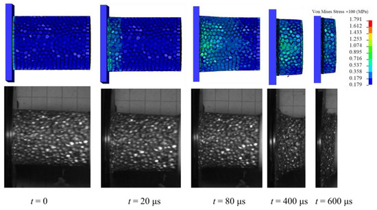 This study investigates the dynamic response characteristics of aluminum foam materials under low to medium-high velocity impact loading, elucidating their deformation mechanisms and energy absorption capabilities through an integrated experimental and numerical simulation approach. The multi-stage deformation behavior of aluminum foam was investigated through the Taylor impact test, which demonstrated that impact velocity significantly affects its stiffness and energy absorption capability. The accuracy of stress distribution and mechanical properties during the impact process is validated, and the deformation behavior under medium- and high-speed impact conditions is clearly revealed. Through integrated macroscopic and microscopic analyses, the dynamic response characteristics of aluminum foam under various impact loads are systematically investigated, elucidating the mechanisms of internal pore collapse and dynamic compressive behavior, thereby providing robust theoretical support for the optimized design of aluminum foam in cushioning and protective applications.