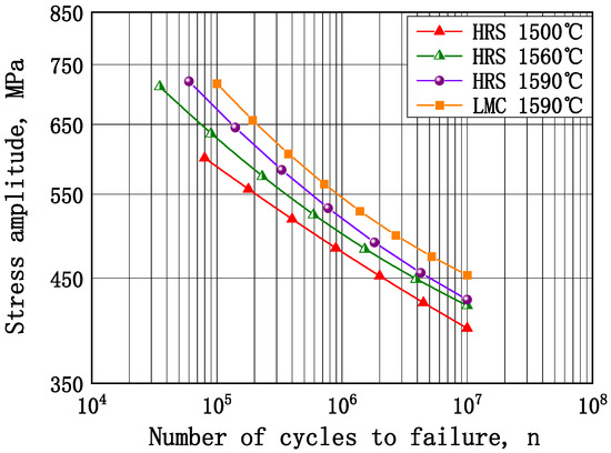 This study investigates the influence of solidification conditions on the high-cycle fatigue (HCF) behavior of a second-generation DD6 single-crystal superalloy. Single-crystal bars with a [001] orientation were prepared using the high-rate solidification (HRS) and liquid-metal cooling (LMC) techniques under various pouring temperatures. The HCF performance of the heat-treated alloy was subsequently evaluated at 800 °C using rotary bending fatigue tests. The results demonstrate that increasing the pouring temperature effectively reduced the content and size of microporosity in the HRS alloys. At an identical pouring temperature, the LMC alloy exhibited a significant reduction in microporosity, with its content and maximum pore size being only 44.4% and 45.8% of those in the HRS alloy, respectively. Consequently, the HCF performance was enhanced with increasing pouring temperature for the HRS alloys. The LMC alloy outperformed its HRS counterpart processed at the same temperature, showing a 9.4% increase in the conditional fatigue limit (at 107 cycles). Microporosity was identified as the dominant site for HCF crack initiation at 800 °C. The role of γ/γ′ eutectic in crack initiation diminished or even vanished as the solidification conditions were optimized. Fractographic analysis revealed that the HCF fracture mechanism was quasi-cleavage, independent of the solidification conditions. Under a typical stress amplitude of 550 MPa, the deformation mechanism was characterized by the slip of a/2<011> dislocations within the γ matrix channels, which was also unaffected by the solidification conditions. In conclusion, optimizing solidification conditions, such as by increasing the pouring temperature or employing the LMC process, enhances the HCF performance of the DD6 alloy primarily by refining microporosity, which in turn prolongs the fatigue crack initiation life.