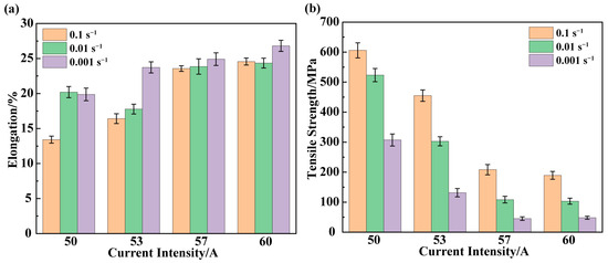 Pulse current-assisted flexible granular medium forming is a promising approach for manufacturing complex thin-walled components from difficult-to-deform Ti2AlNb-based alloys. In this study, the electro-thermo-mechanical deformation behavior of Ti2AlNb sheets is investigated through pulse current-assisted uniaxial tensile tests, microstructural characterization, and finite element simulations. The influences of pulse current intensity and strain rate on flow behavior, fracture characteristics, and phase evolution are clarified, and an effective forming window is identified. Numerical simulations are employed to analyze the role of granular medium friction in material flow and wall thickness distribution, providing guidance for forming box-shaped components. The results demonstrate that forming at approximately 950 °C with a strain rate of 0.001 s−1 reduces deformation resistance, while enhanced tangential interaction between the granular medium and the sheet improves wall thickness uniformity. This study provides a feasible processing route and practical guidelines for the fabrication of complex Ti2AlNb sheet components.