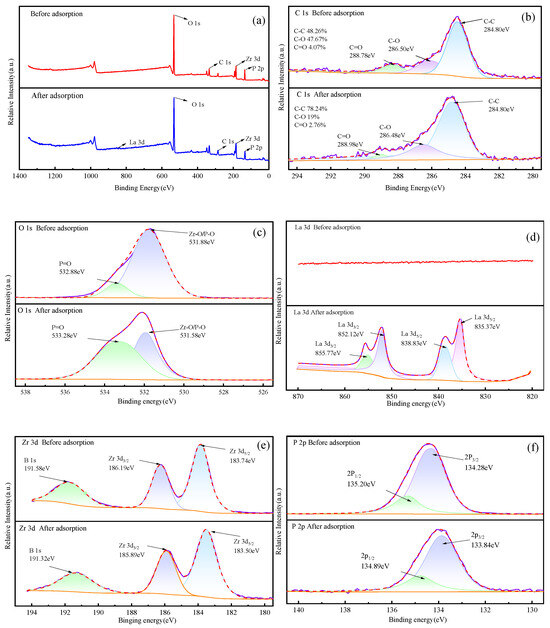 The efficient recovery of rare earth elements (REEs) from low-concentration mine tailwater is crucial for resource sustainability. In this study, a novel composite adsorbent, sesame stalk biochar-supported zirconium phosphate (sBC/ZrP), was synthesized for the selective adsorption and recovery of La3+ as a
