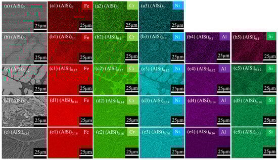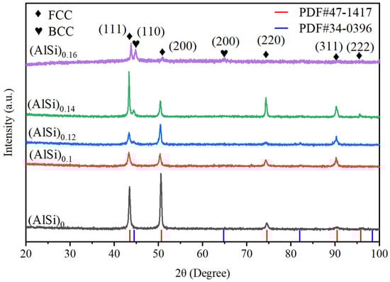 In this paper, a series of Co-free FeCr0.6Ni0.6(AlSi)x (x = 0, 0.1, 0.12, 0.14, 0.16) high-entropy alloys (HEAs) were designed and fabricated by suction casting, and the effects of equi-molar (Al, Si) co-addition in these Fe-rich Fe-Cr-Ni-based HEAs