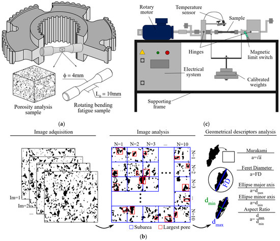 The use of powder metallurgy in the manufacturing of automotive components requires understanding the influence of porosity on fatigue behaviour. The most widely accepted explanation for the impact of porosity on the fatigue limit is Murakami’s “√Area = √A” theory. However, the presence of elongated or irregular pores in sintered steels challenges this simplification. This study analyses the fatigue behaviour of three sintered steels and performs a statistical and geometrical assessment of porosity. Results demonstrate that replacing the √A parameter with the ellipse-fitted major axis (dmax) reduces the average prediction error from nearly 50% to below 6%, markedly improving the predictive accuracy of defect-based fatigue models.