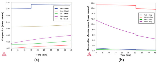 The design of ladle furnace (LF) refining pathways for weathering steels requires precise control of multi-component steel/slag reactions governed simultaneously by thermodynamics and interfacial mass transfer kinetics. An EERZ-based kinetic modeling strategy was employed using the Thermo-Calc® (version 2022a) Process Metallurgy Module