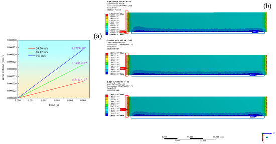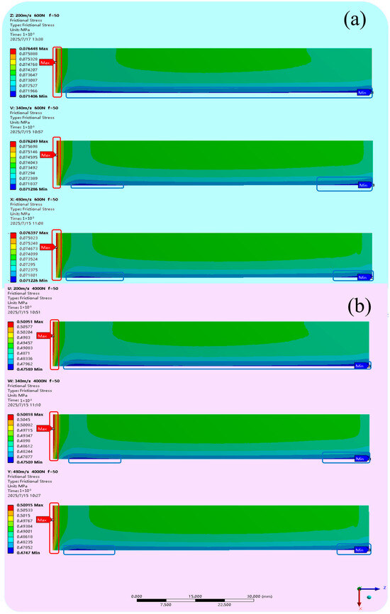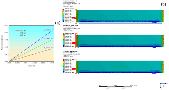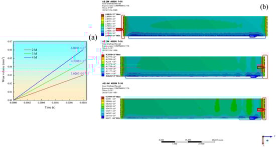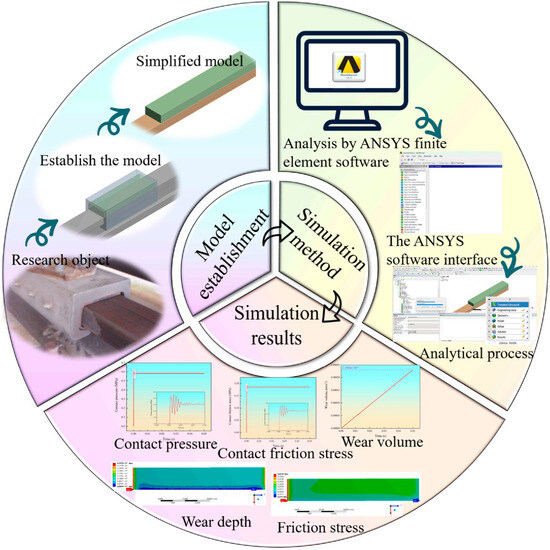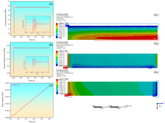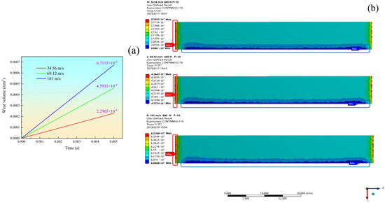 The rocket sled slider is a key connection component between the rocket sled and the track for support, guidance and load-bearing, ensuring the system’s safe and reliable operation. Wear of sliders under high—velocity and heavy—load conditions is crucial for equipment reliability. This study establishes a wear prediction model for sled rails using ANSYS, incorporating a dimensionless acceleration factor into the simulation. By analyzing dynamic characteristics of contact friction stress, wear volume, depth, and stress over time, the tribological characteristics of 30CrMnSiNi2A steel sliders were studied. The simulation results showed that during dry—friction sliding, slider wear is highly related to speed and load, increasing significantly as they increase. The slider’s contact surface has non-uniform stress distribution with stress concentration and gradient changes. Quantitative analysis has revealed that friction stress is positively correlated with load, and its sensitivity to speed changes is high at low speeds and relatively low at high speeds.