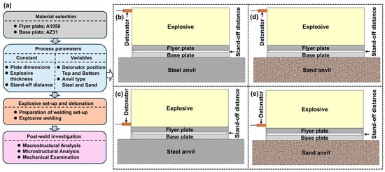 The Combined Influence of the Detonator Position and Anvil Type on the Weld Quality of Explosively Welded A1050/AZ31 Joints
