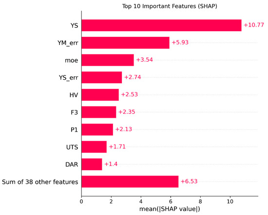This study explores the use of machine learning to predict the experimental Young’s modulus of titanium alloys based on their mechanical and microstructural properties. Several regression models were developed and compared, including Random Forest, XGBoost, CatBoost, Multi-Layer Perceptron, and a Stacking Regressor. Among these, Random Forest, XGBoost and CatBoost achieved the most accurate results with R2 values above 0.85. To improve interpretability, SHapley Additive exPlanations were applied to examine which input features most strongly influenced the predictions. The results showed that yield strength, hardness, and the molybdenum equivalent parameter (moe) were among the most influential descriptors. While yield strength and hardness were positively associated with the predicted values, higher moe values corresponded to lower predicted Young’s modulus. This study focuses on the prediction of Young’s modulus, a comparatively less explored elastic property in Ti-alloy machine learning studies and combines systematic model comparison with SHAP-based interpretability to provide physically consistent insights into feature–property relationships.