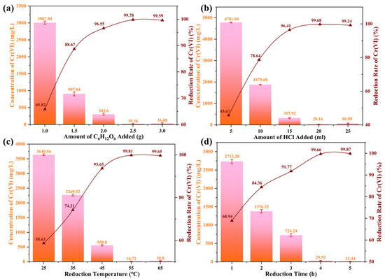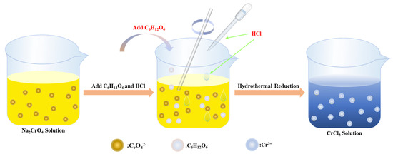 Metallurgical chromium slag is a hazardous by-product generated during the production of chromium salts and metallic chromium, containing significant amounts of leachable Cr(VI), which poses severe environmental and human health risks. To address this challenge, this study presents an integrated “alkaline roasting, water leaching with impurity removal, glucose reduction and vacuum calcination” process for its direct preparation to nano-pigment-grade Cr2O3. The reduction process was systematically optimized by investigating the effects of critical parameters: glucose dosage, HCl concentration, reduction temperature and time. Optimal conditions were established as 2.5 g of C6H12O6, 20 mL of 12 M HCl, 55 °C and 4 h, achieving the Cr(VI) reduction efficiency of 99.66%. Comprehensive characterization of the final product via XRD, SEM-EDS and XRF confirmed its high quality. The Cr2O3 exhibited a purity of 99.31%, well-developed crystallinity and a uniform sub-micron particle size distribution, fully meeting industrial standards for pigment applications. By substituting conventional hazardous reductants with glucose, this route demonstrates enhanced safety, environmental compatibility and cost-effectiveness. The proposed methodology not only provides a practical and scalable solution for the valorization of hazardous chromium slag but also contributes to the advancement of green processing technologies in the metallurgical sector, supporting the transition towards a circular economy.