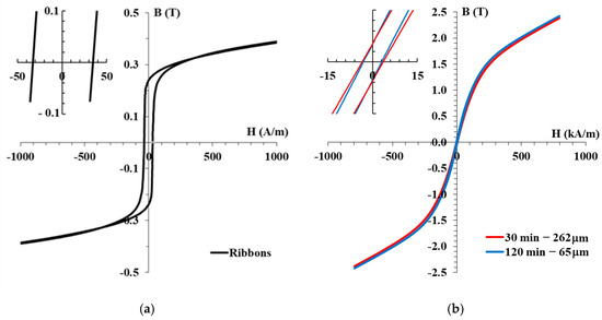 High purity powders of Fe, Si and B mixed with atomic composition Fe78Si9B13 are subjected, after arc melting, to a melt spinning process. The amorphous ribbons are transformed into powder by mechanical milling, reaching mean sizes of 65