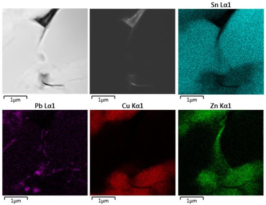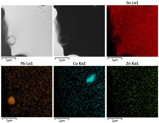 This study focused on investigating the influence of zinc on tin pest, both alone and in combination with lead and copper. Based on the known composition of the organ pipe from Trpín, five model alloys were prepared, from which model samples were produced. The model alloys were exposed to low temperatures for 100 days or until complete degradation occurred. The kinetics of the transformation were compared for annealed and non-annealed samples. It was confirmed that the transformation is much faster in samples with retained internal stress. A comparison of the Avrami coefficients indicated similar nucleation behavior for both sample types. Phase transformation was observed in samples containing tin, copper, zinc, and lead, as well as those containing only copper and lead. This suggests that even a relatively small amount of zinc (0.25 wt.%) and copper (0.9 wt.%) can affect the course of tin pest in an alloy containing 13 wt.% lead. Transformation progressed more slowly in samples with only 0.25 wt.% zinc than in pure tin, likely due to the limited solubility of zinc in a tin with low concentrations of alloying elements. The crystallographic structure of both the model alloys and the original historical pipe material was studied using transmission electron microscopy (TEM). In almost all model samples, zinc was uniformly dissolved in the tin matrix. However, in the original pipe, zinc was primarily located at grain boundaries and in association with copper. This indicates that zinc was not intentionally added to the historical alloy but likely appeared in the alloy as a contaminant of impure copper.