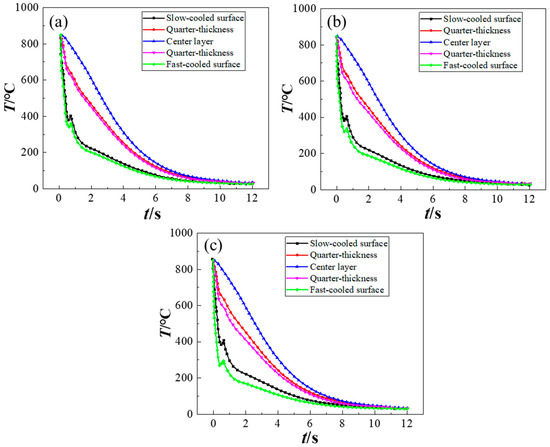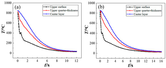 Gigapascal ultra-high-strength steel holds significant applications in the energy and military sectors. Such steel is typically produced through quenching and tempering processes. However, during quenching, issues such as excessive internal stress often lead to significant deviations in flatness, thereby reducing product precision. This study adopts an approach integrating theoretical and practical methods to develop a control technology for achieving high flatness in gigapascal ultra-high-strength martensitic steel. Firstly, finite element simulation was employed to establish a temperature-phase transformation-stress coupling model for the quenching process of gigapascal martensitic steel. The study investigated the deformation behavior of steel plates under unilateral cooling, the influence of dynamic martensitic transformation on internal stress, and the effects of plate thickness and water ratio. This revealed how quenching process parameters affect the internal stress and deformation of steel plates. Based on theoretical calculations and considering on-site equipment conditions, industrial production line commissioning was conducted, which significantly reduced the quenching internal stress of gigapascal ultra-high-strength martensitic steel and greatly improved the flatness of the steel plates. The results surpassed those of international companies such as Sweden’s SSAB and other domestic enterprises, achieving an internationally leading level.