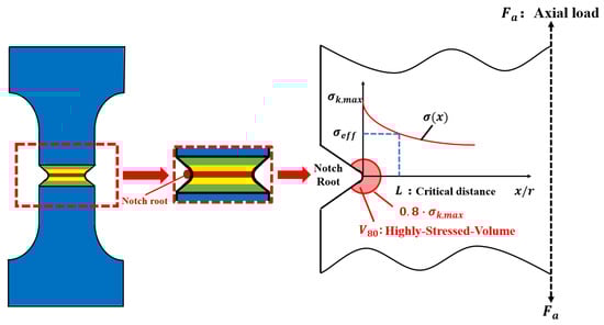 Probabilistic Modeling of Fatigue Life Prediction of Notched Specimens Combining Highly Stressed Volume and Theory of Critical Distance Approach