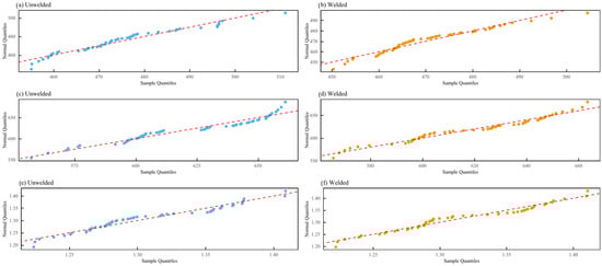 To quickly predict the fatigue strength of welded joints in high-cycle fatigue tests and fit the S-N curve, this paper proposes a new model based on infrared thermal imaging technology. High-cycle fatigue tests were conducted on laser-welded joints of weathering steel Q450NQR1 and separately, on joints made of stainless steel T4003, while local temperature variations in the joints were monitored. Based on the experimentally observed temperature drop behavior, a novel Temperature-Drop-Curve-Based Fatigue Damage Entropy (TDC-FDE) model was developed to rapidly estimate the fatigue life and fatigue limit of welded joints. The model quantifies the entropy generated during fatigue damage evolution based on the temperature-decrease slope and establishes a direct relationship between entropy and the fatigue performance of the joint using this slope as the linking parameter. Experimental results indicate that a material’s specific heat capacity, density, elastic modulus, and applied stress level directly influence fatigue damage entropy generation. The entropy increase associated with purely elastic deformation does not contribute to fatigue damage in high-cycle fatigue; therefore, this portion should be excluded from the fatigue damage entropy calculation. The fatigue damage entropy of a given weld joint tends to remain nearly constant under different stress levels and loading frequencies. Finally, traditional fatigue tests demonstrated that the maximum deviation between the fatigue strength predicted by the proposed model and the experimentally measured values does not exceed 3.4%, thereby verifying the model’s accuracy and effectiveness in evaluating fatigue performance.