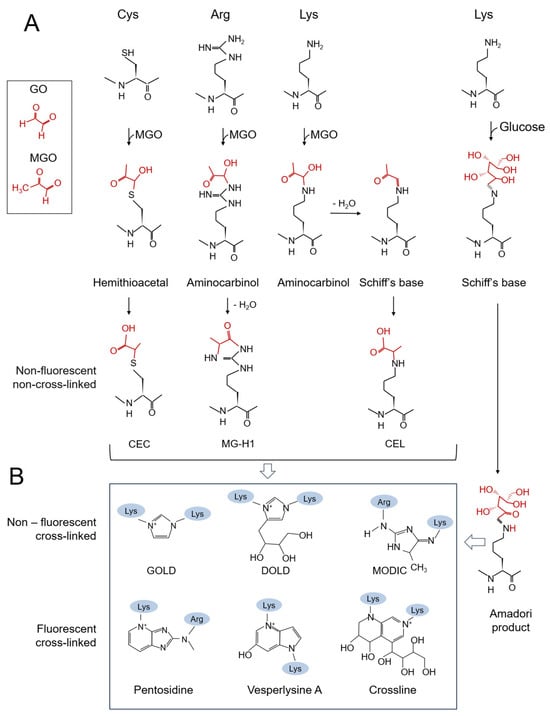Glyoxal (GO) and methylglyoxal (MGO) are highly toxic metabolic byproducts that induce carbonyl stress in bacteria and eukaryotes. Their accumulation in cells is linked to non-enzymatic glycosylation (glycation) of proteins, nucleic acids, and lipids, leading to the formation of advanced glycation end products