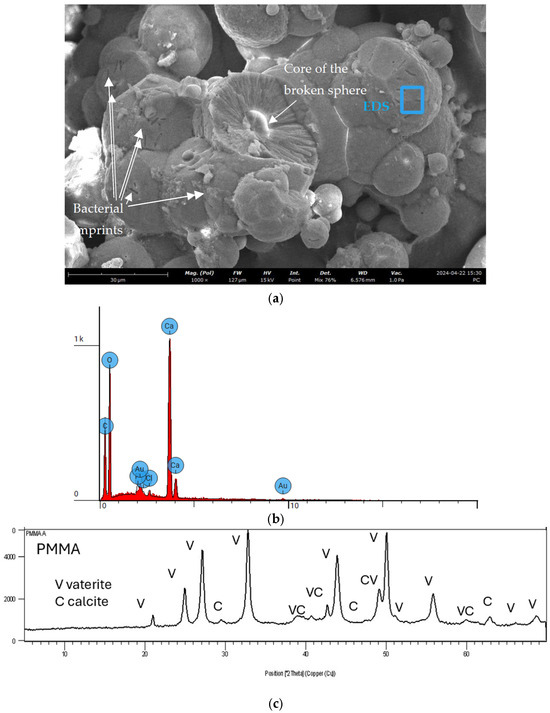 Microbially Induced Carbonate Precipitation (MICP) is a biochemical process that promotes the precipitation of calcium carbonate, mainly in the mineral form of calcite, using urease-producing bacteria. This method has numerous applications, particularly in the field of geotechnical engineering when it is adopted for soil improvement or for the consolidation of porous or cracked construction materials such as stone and concrete. One microfluidic platform made of polymethylmethacrylate (PMMA) was designed with multiple channels, and the minerals precipitated were visualized using an optical microscope. The precipitated mineral observed in all channels analyzed formed spherical mineral structures with a core and multiple external rings. The same spherical mineral structures were observed in the biocement layer precipitated on plates of the same material as that of the microfluidic platform and on limestone, following the same treatment protocol. SEM images of pieces of these layers, complemented with EDS and mineral analysis by XRD, have confirmed the existence of multiple layers of minerals with spherical structures, mainly vaterite, precipitated around a nucleation point. Overlapping minerals in both the confined microfluidic channels and the unconstrained plates indicate that overlap results from repeated injections rather than physical confinement. From the tests with the microfluidic devices, these studies revealed that crystallization depends on different factors, namely the size of the channels and the number of Sporosarcina pasteurii cells. The number of injections appeared to affect the number of rings precipitated around the inner core. Substrate effects on spatial distribution or adhesion may still exist but were not detectable in this study and require further investigation. The observation of similar mineralogical structures in both the microfluidic devices and the plates, particularly the limestone, demonstrates that microfluidic systems are effective tools for small-scale visualization of geological processes.
