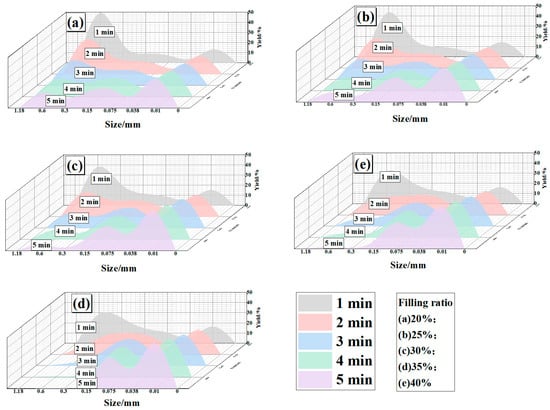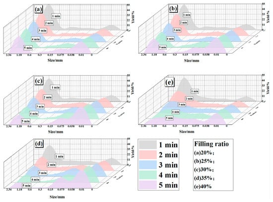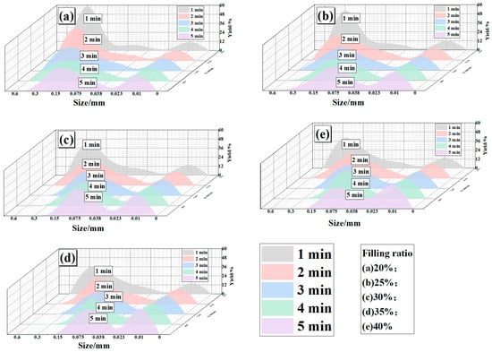 To clarify the influence of the media filling ratio on fine particle production during ceramic ball grinding of magnetite, magnetite ore from the fine grinding stage of an industrial concentrator was investigated under different feed size classes and media filling ratios through grinding