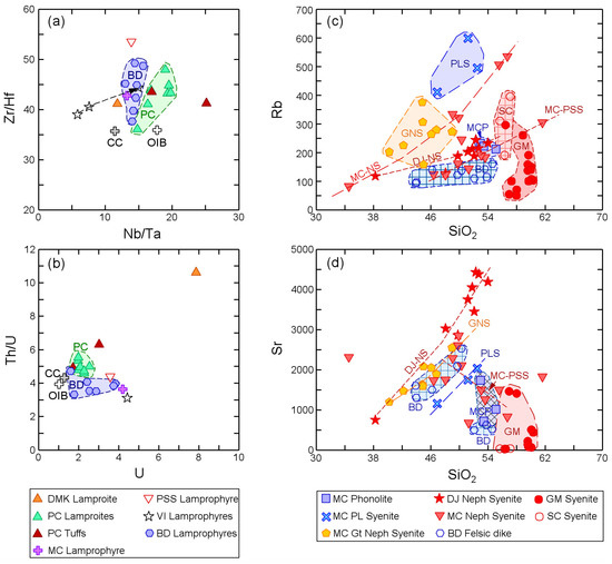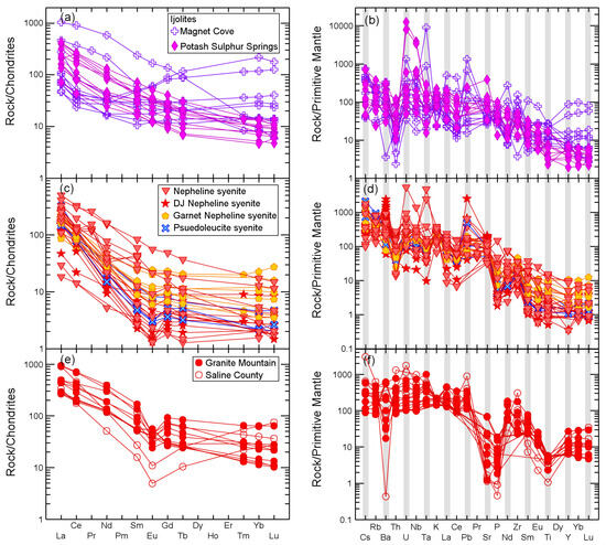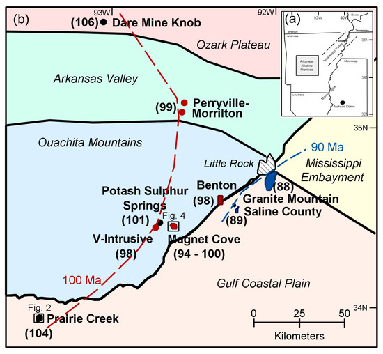 The Arkansas alkaline province (AAP), southeastern US, consists of seven intrusions or intrusive complexes that lie along a NE–SW trend that falls on the extension of the Mississippi Valley graben. There are three distinct magmatic events: (1) emplacement of lamproites at ~104 Ma, [...] Read more.
