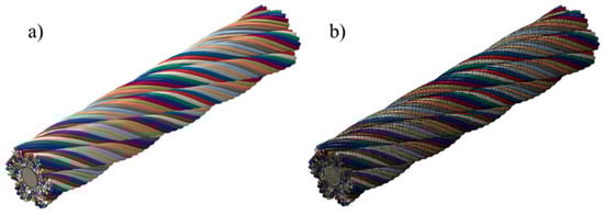 Wire rope joints are critical components requiring detailed mechanical analysis. This study investigates the stress/strain characteristics at the joint root under axial impact and combined tension-bending loads. A mathematical model was derived from the rope’s spatial structure, enabling the construction of 3D simulation