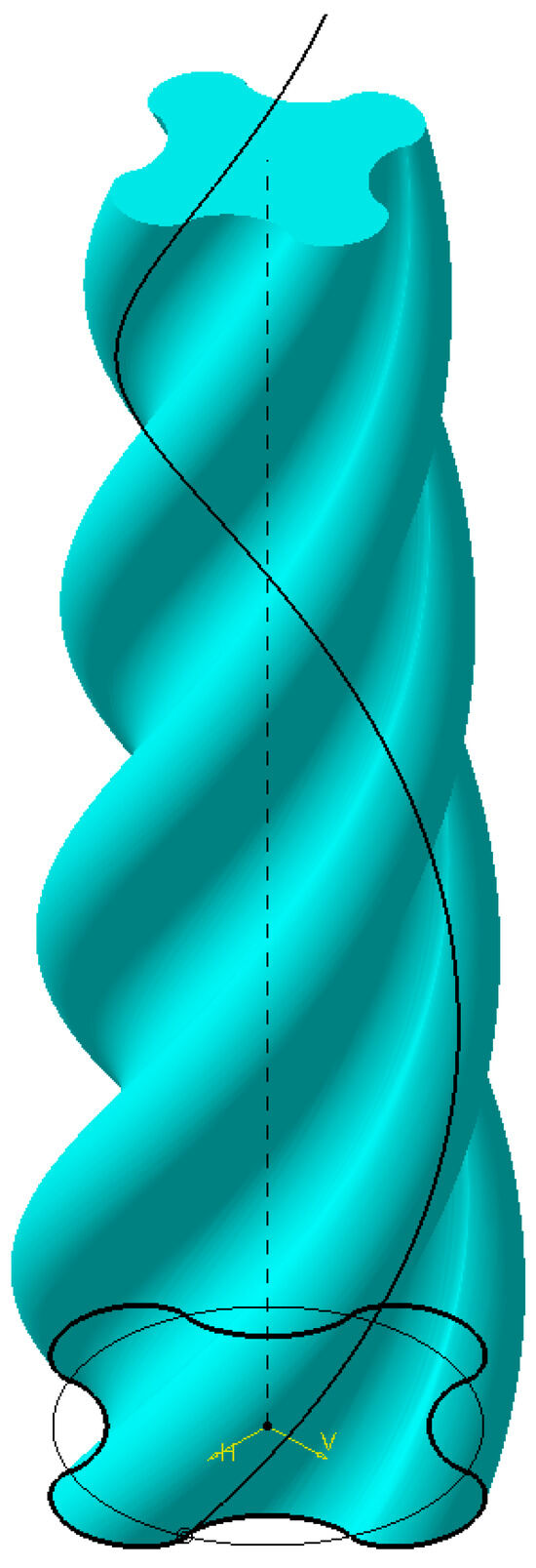 Conical screw compressors are increasingly used in applications that require quiet operation and reduced dimensions. One of the important problems in the case of these compressors is the profiling of the active elements, which are conical screws, with constant or variable pitch. This problem can be solved using programs that allow for the creation of a virtual solid that represents the trace left by a body during its movement. In this paper, the profiling of the outer rotor of a conical screw compressor, with variable pitch, is pro-posed by numerical modeling of the space swept by the inner rotor while rotating. After obtaining the numerical model, a physical replica of it was made by 3D printing. The obtained part was scanned using an ATOS Core 500 video measurement system. Subsequently, the model obtained by scanning was compared with the numerical model of the rotor. The numerical model was obtained first using a part with known shape and dimensions. Since the helical–conical surface has variable pitch, it is possible to analyze the influence of the helix inclination angle on the modeling accuracy in parallel with the analysis of the contact between the two rotors.