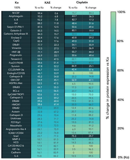 Kigelia africana (“sausage tree”) is an established medicinal plant in African traditional medicine, now recognized for its diverse bioactive constituents and emerging anticancer potential. This study systematically evaluates Kigelia africana fruit extract (KAE) in an in vitro model of HT-29 colorectal carcinoma cells, focusing on its cytotoxic effects, mechanistic impact on protein expression, and synergy with cisplatin chemotherapy. Across 42 oncology-related proteins, covering cell survival, apoptosis, adhesion, invasion, and signaling, KAE demonstrated extensive but typically moderate modulation, while cisplatin produced more pronounced responses in most markers. Protein changes linked to metastasis, therapy resistance, and survival were broadly suppressed, indicating significant antitumor activity. Notably, co-treatment with KAE and cisplatin in HT-29 cells resulted in marked synergistic cytotoxicity, permitting lower cisplatin doses while maintaining efficacy. LC-HRMS analyses revealed 14 metabolites in the extract, including phenolic acids naphthoquinones and iridoids, which may contribute to these effects.