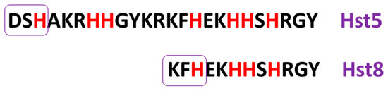 Histatins are histidine-rich antimicrobial peptides present in human saliva, with histatin 5 (Hst5) demonstrating the most potent antifungal activity. Previous studies have linked the antifungal properties of histatins, particularly those against Candida species, to their ability to bind metal ions such as Cu(II)