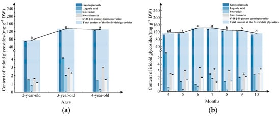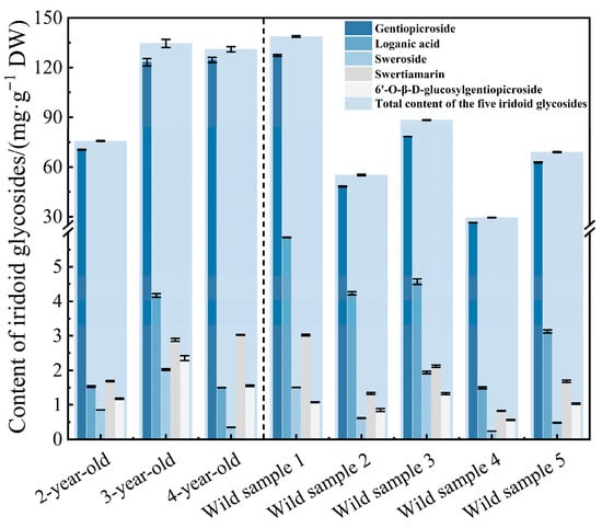 Gentiana species are widely used in traditional and modern medicine, and Gentiana siphonantha is an important medicinal representative. To evaluate the quality characteristics of cultivated G. siphonantha roots, the accumulation patterns of iridoid glycosides and antioxidant activities across different cultivation ages and harvest