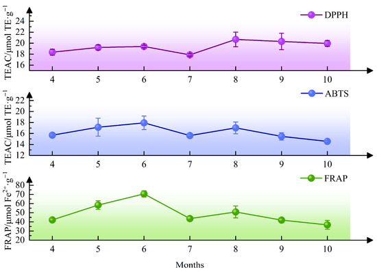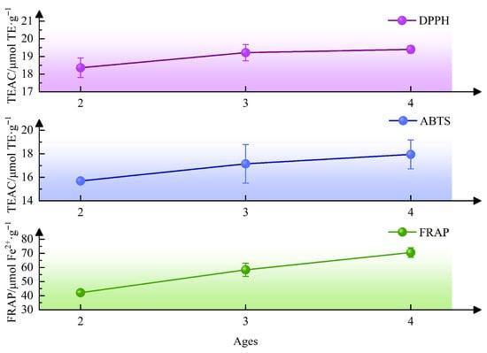 Gentiana species are widely used in traditional and modern medicine, and Gentiana siphonantha is an important medicinal representative. To evaluate the quality characteristics of cultivated G. siphonantha roots, the accumulation patterns of iridoid glycosides and antioxidant activities across different cultivation ages and harvest months were investigated. Five major iridoid glycosides were quantified, and antioxidant capacity was assessed through DPPH, ABTS, and FRAP assays. Quality was subsequently multidimensionally evaluated using principal component analysis (PCA), orthogonal partial least squares–discriminant analysis (OPLS-DA), membership function analysis, and entropy weight–TOPSIS analysis, and the relationship between iridoid glycoside content and antioxidant activity was analyzed. Results showed that 3-year-old cultivated roots had the highest total iridoid glycoside content (134.60 mg·g−1 DW), indicating the optimal cultivation age. Peak glycoside accumulation occurred in 4-year-old plants harvested in June–July, identifying this period as the optimal harvest time, as supported by multivariate statistical and comprehensive evaluation. Antioxidant activity increased with cultivation age, with samples collected in June or August showing higher capacities, and it was positively correlated with total iridoid glycoside content, particularly with FRAP (p < 0.05). In conclusion, cultivated G. siphonantha exhibits stable quality and favorable antioxidant activity, providing a basis for standardized cultivation, quality evaluation, and rational utilization.