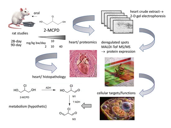 The toxic actions of 2-monochloropropane-1,3-diol (2-MCPD) are still less well understood than those of 3-monochloropropane-1,2-diol (3-MCPD). The toxic effects of 2-MCPD on the heart, especially at the proteomic level, were recently investigated by researchers in a subacute (28 days, in 2017) and in