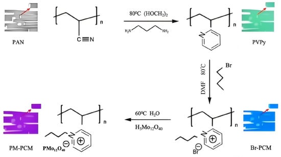 A novel polycationic membrane (PCM) was synthesized by the cyclization of polyacrylonitrile (PAN) with m-ethylene diamine, converting the nitrile groups into pyridine units, followed by quaternization with 1-bromobutane. The resulting PCM was further functionalized by loading the photocatalyst, phosphomolybdic acid (PMo), via anion