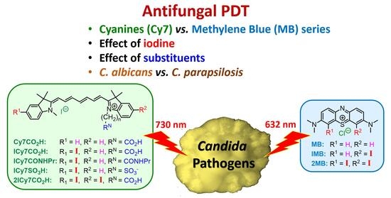 Iodinated Near-Infrared Dyes as Effective Photosensitizers for the Photodynamic Eradication of Amphotericin B-Resistant Candida Pathogens